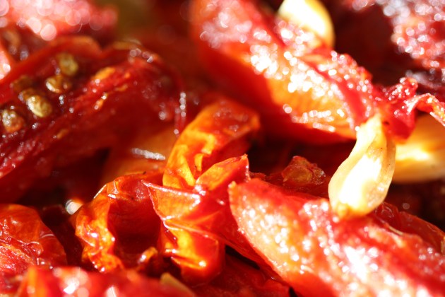 I’ve made them twice now and am wowed by the amazing flavour that pops in my mouth when I’m eating them. It’s fantastic what 12 hours in the oven (at the lowest temp), covered in olive oil, some garlic and pepper can do to these tomatoes. The best part–I was sleeping while this creation was taking place.